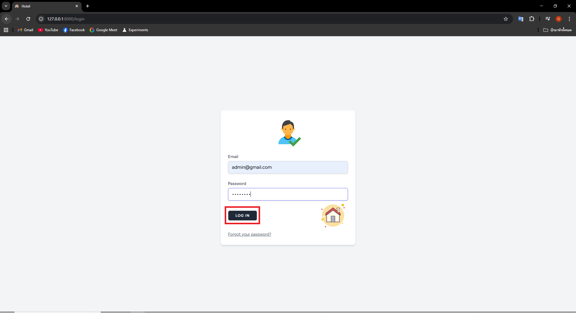 กรอกอีเมลล์ และพาสเวิร์ด ให้ถูกต้อง (กดที่รูปเพื่อดูรายละเอียด)