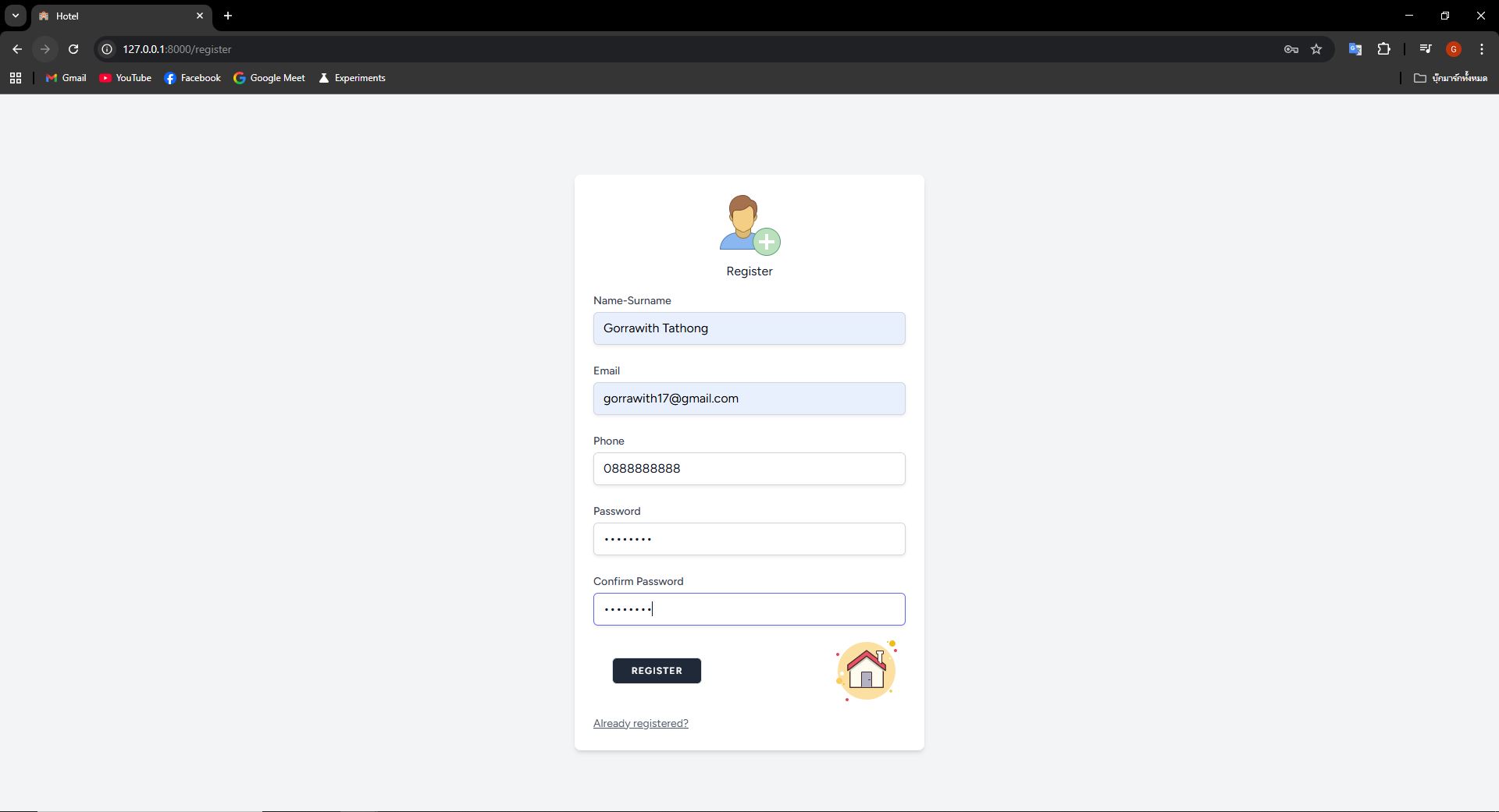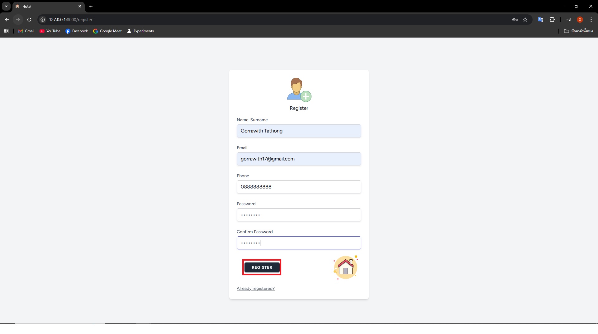 กรอกชื่อ-นามสกุล อีเมลล์ เบอร์โทรศัพท์ และพาสเวิร์ด (กดที่รูปเพื่อดูรายละเอียด)